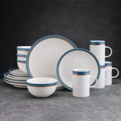 Pfaltzgraff Bella Dinnerware features an antiqued gray color that is highlighted by a blue floral pad print and framed with a metallic rim, with a reactive glaze. Due to the nature and hand-crafted qualities of reactive glaze, no two pieces are exactly alike and will exhibit unique variations in color and pattern. Product may slightly differ from image shown.