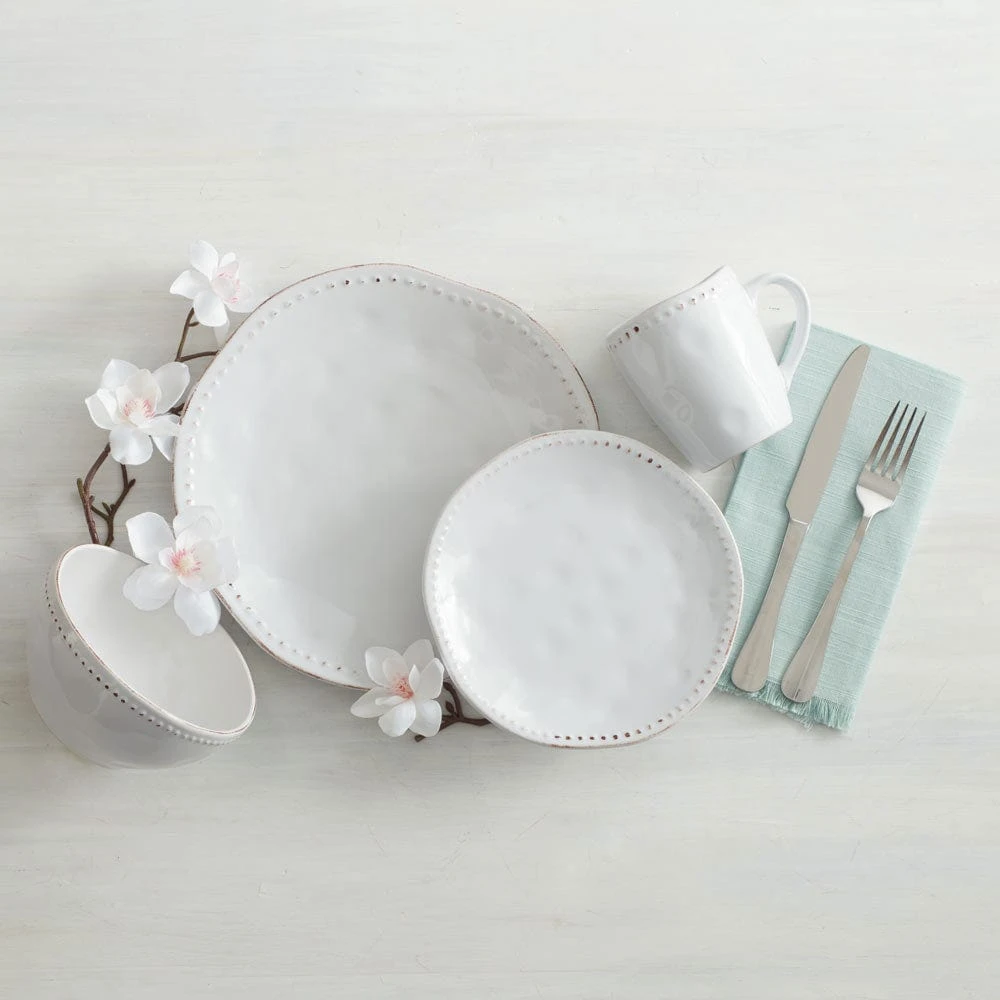 These mugs are perfect for morning coffee, afternoon tea, or cocoa by the fire, but also great for juice, milk or tangy soup. Crafted of stoneware. Microwave and dishwasher safe. Set of 4 mugs, each measures 4-1/2 inch high and holds 16 ounces.
