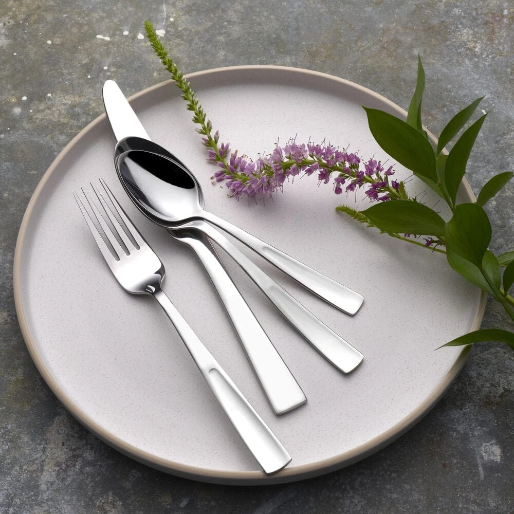 This Danford Flatware Set features simple rectangular handles with rounded edges and will make a beautiful addition to any table setting.