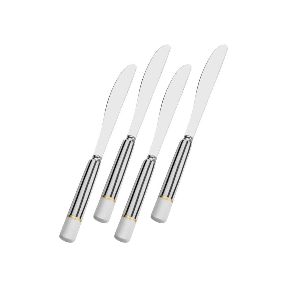 This International Silver French Cafe Set of 4 Spreaders features white and black striped handles and it’s perfect for a casual indoor lunch or an outdoor picnic. Crafted of 18/0 stainless steel. Dishwasher safe. Set of 4 spreaders, each measures 7-1/2 inch long.