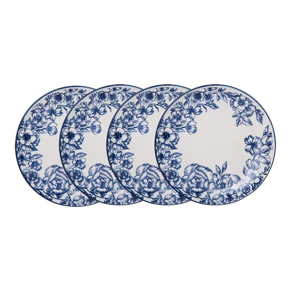 Crafted of Stoneware, featuring a reactive glaze. Due to the nature and hand-crafted qualities of reactive glaze, no two pieces are exactly alike and will exhibit unique variations in color and pattern. Product may slightly differ from image shown. Add a touch of classic style to a contemporary table with Gabriela Blue dinnerware. Microwave and dishwasher safe. Set of 4 salad plates, each measures 8-1/2 inch diameter.