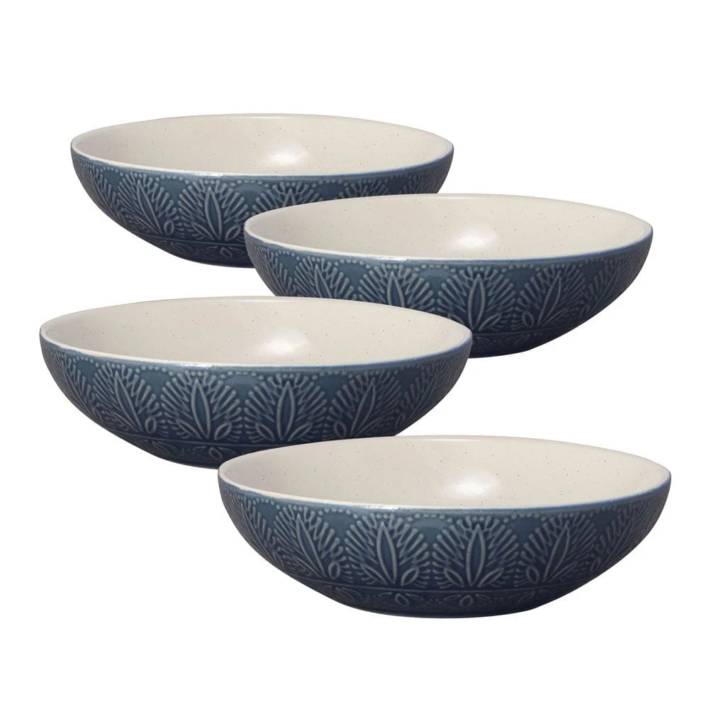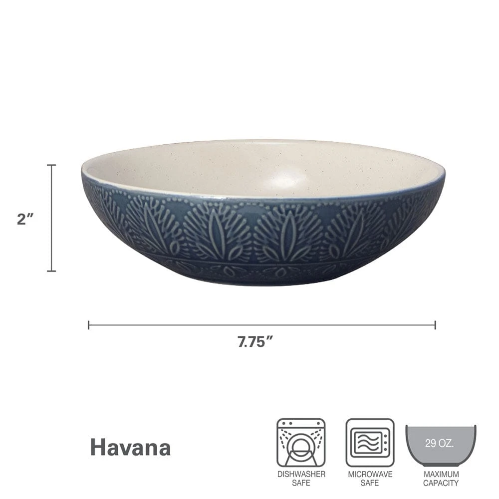 This Pfaltzgraff Havana Set of 4 Pasta Bowls feature a classic, jeweled tone blue backdrop with an embossed pattern, and a reactive glaze finish. Due to the nature and hand-crafted qualities of reactive glaze, no two pieces are exactly alike and will exhibit unique variations in color and pattern. Product may slightly differ from image shown.
