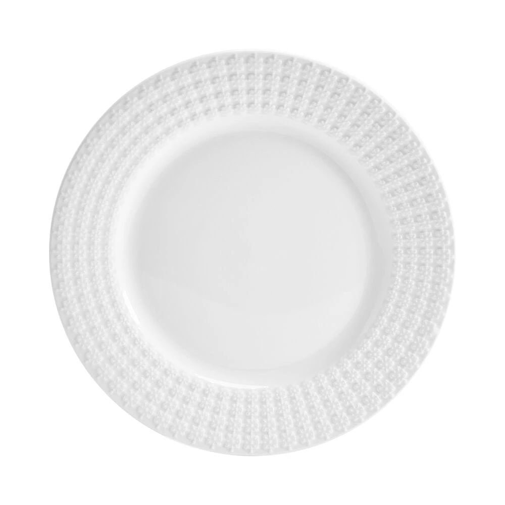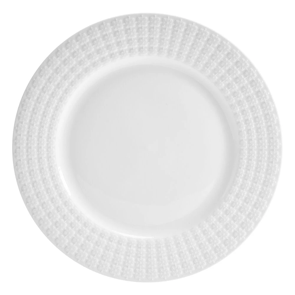This Lexi Dinnerware Set features a crisp white background with a square embossed design on the rim, will add a modern and whimsical addition to your dining table, and is perfect for everyday dining or light entertaining.