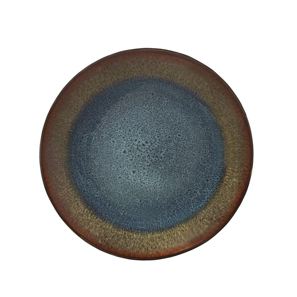 Monroe Blue features a speckled blue center, while the natural line designs circling the rims bring out an earthy color palette. A deep, dark band frames the edges, Crafted of Stoneware, featuring a reactive glaze. Due to the nature and hand-crafted qualities of reactive glaze, no two pieces are exactly alike and will exhibit unique variations in color and pattern. Product may slightly differ from image shown. 16 piece dinnerware set, service for four, includes (4) each: 10-3/4 inch dinner plate, 8-1/4 inch salad plate, 7-1/2 inch soup cereal bowl and 14 ounce mug. Microwave and dishwasher safe.