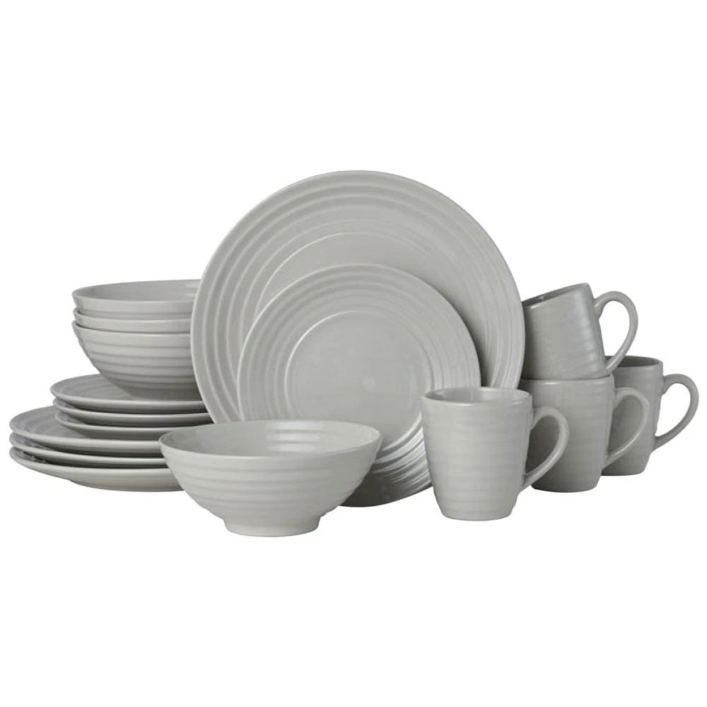 Crafted of stoneware. 16 piece dinnerware set, service for four, includes (4) each: 11 inch dinner plate, 8 inch salad plate, 7 inch diameter (30 ounce) soup cereal bowl and 12-1/2 ounce mug. Microwave and dishwasher safe.
