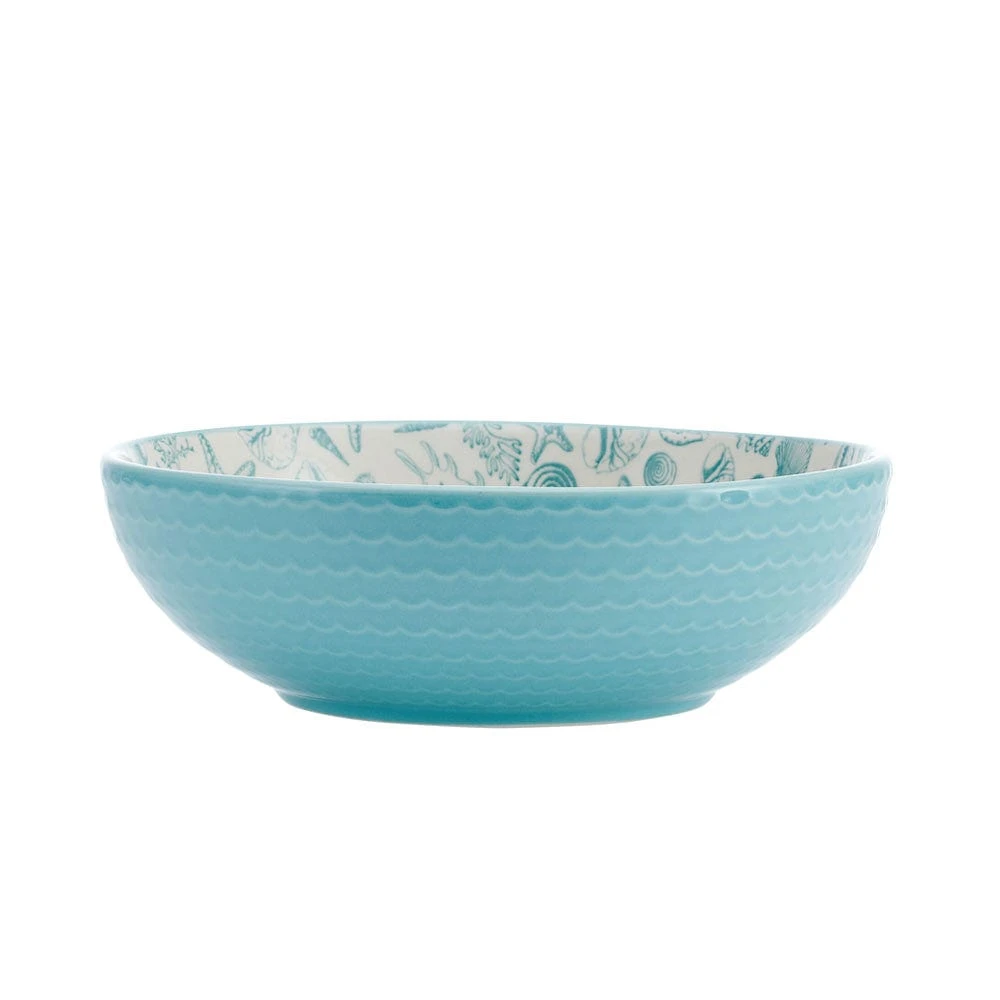 This Venice Set of 2 Pasta Bowls feature a whimsical starfish and seashell pattern that splashes across the surface, with a bright teal exterior that will enhance the coastal theme and make every meal feel like a day at the beach.